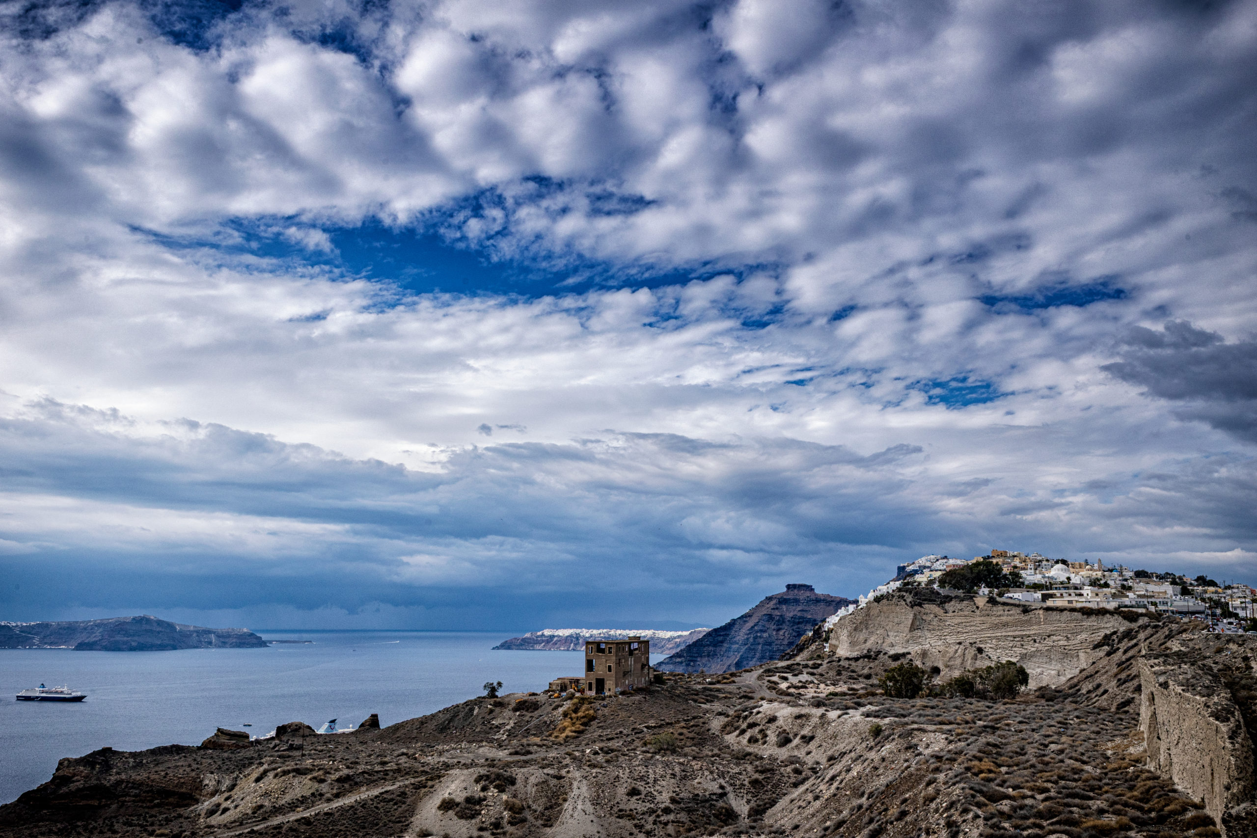 Das Dorf Pyrgos liegt auf einem Hügel im Zentrum der Insel Mit dem öffentlichen Bus kann man mit der Fira-Perissa-Linie dorthin fahren und in Pyrgos auszusteigen. (In Fira gibt es für die Abfahrt feste Zeiten!). Alles dreht sich um die Burg rundherum winden sich kleine Gassen und viele Treppen zum Auf- und Absteigen.