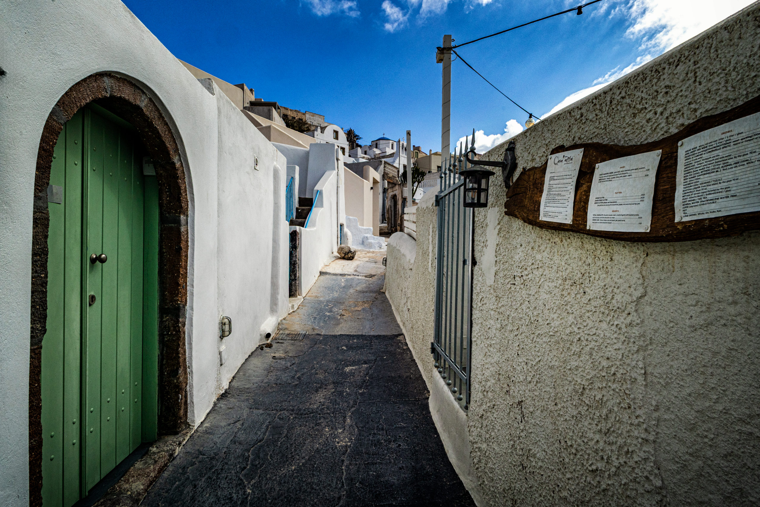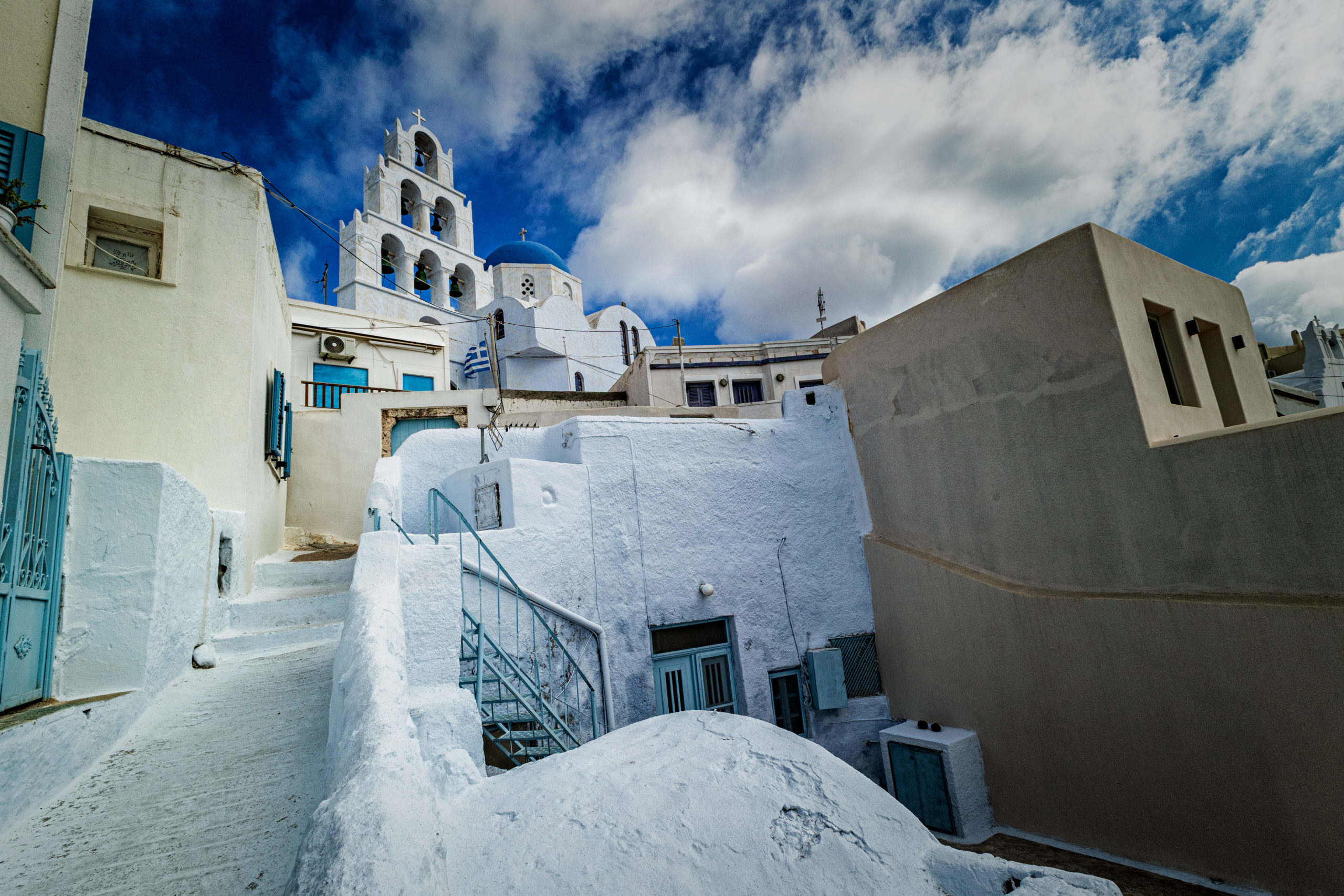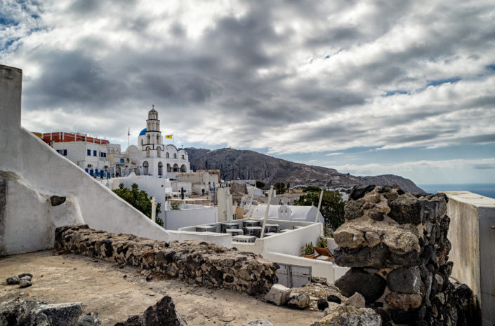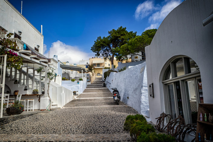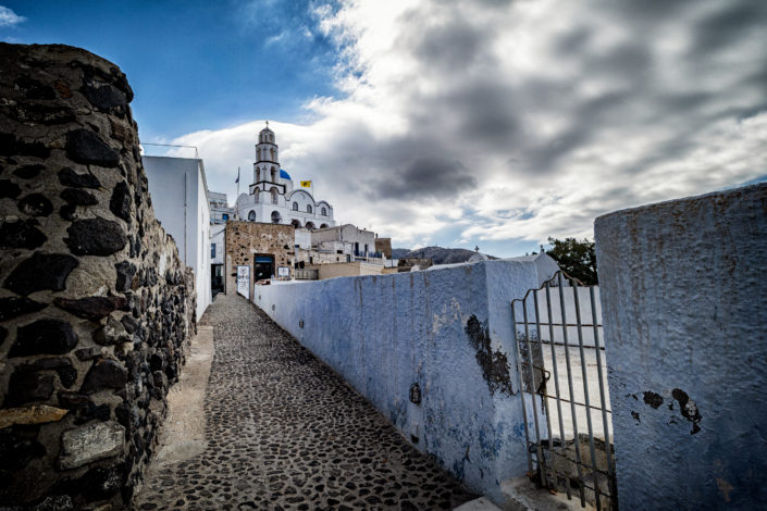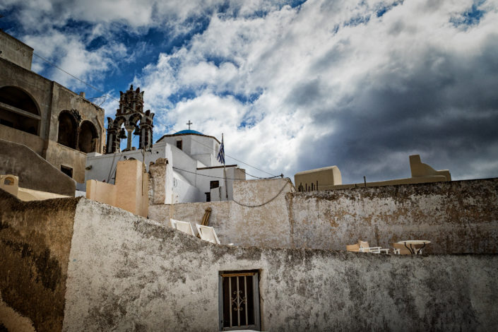 Das Dorf Pyrgos liegt auf einem Hügel im Zentrum der Insel Mit dem öffentlichen Bus kann man mit der Fira-Perissa-Linie dorthin fahren und in Pyrgos auszusteigen. (In Fira gibt es für die Abfahrt feste Zeiten!). Alles dreht sich um die Burg rundherum winden sich kleine Gassen und viele Treppen zum Auf- und Absteigen.